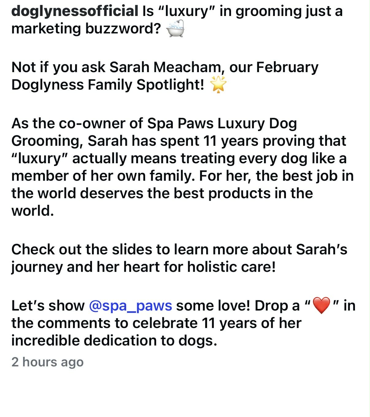 Thank you for your interest in my work, I would love to see you in the Spa sometime soon.” Sarah